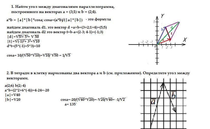 2. В тетради в клетку нарисованы два вектора a и b (см. приложение). Определите угол между векторами.