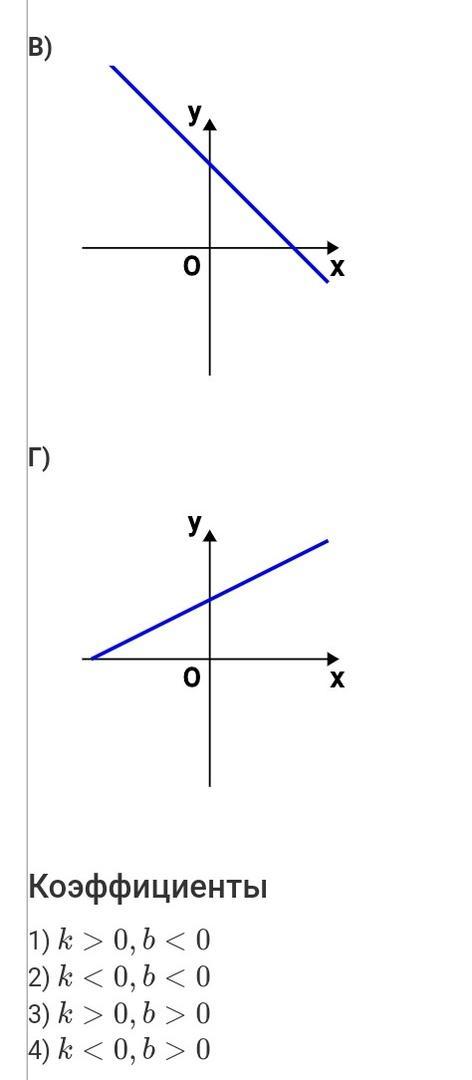 2) Коэффициент b отвечает за точку пересечения с осью у (ось у — это вертикальная ось в координатной плоскости, если что), то есть если b>0, то точка пересечения с осью у будет положительная (это выше чем ноль, если что), и если b<0, то точка пересечения с осью у будет отрицательная (это ниже, чем ноль)