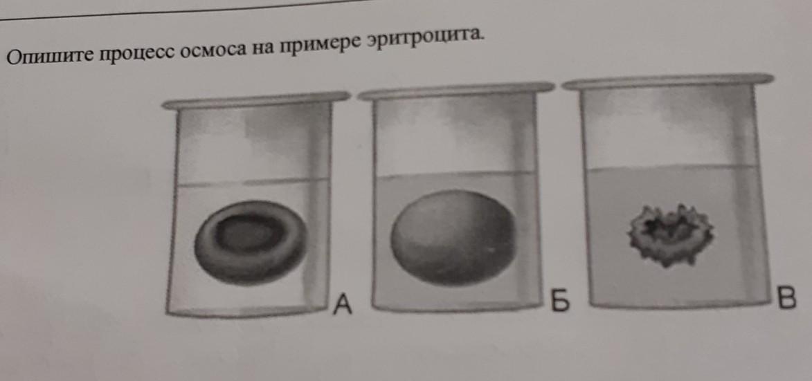 На рисунке А эритроцит находится в изотоническом растворе, поэтому с ним ничего не происходит. (NaCl = 0,9%)