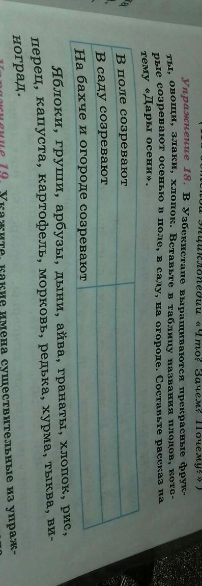 Ответ:В поле созревают : арбузы, дыни, гранаты, хлопок, отм, капуста, тыква