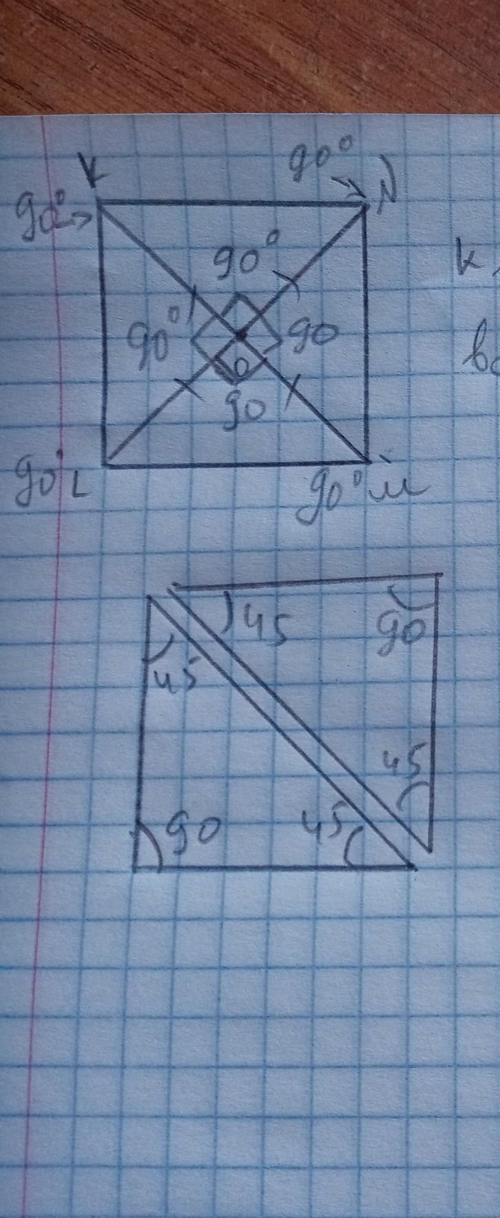 . Диагональ делет квадрат на 2 равных треугольника.