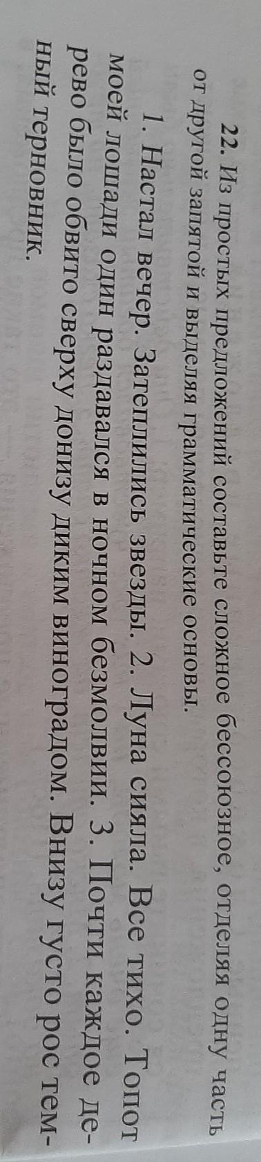 из простых предложений составить сложное бессоюзное отделяя одну часть от другой запятой и выделяя грамматический основы