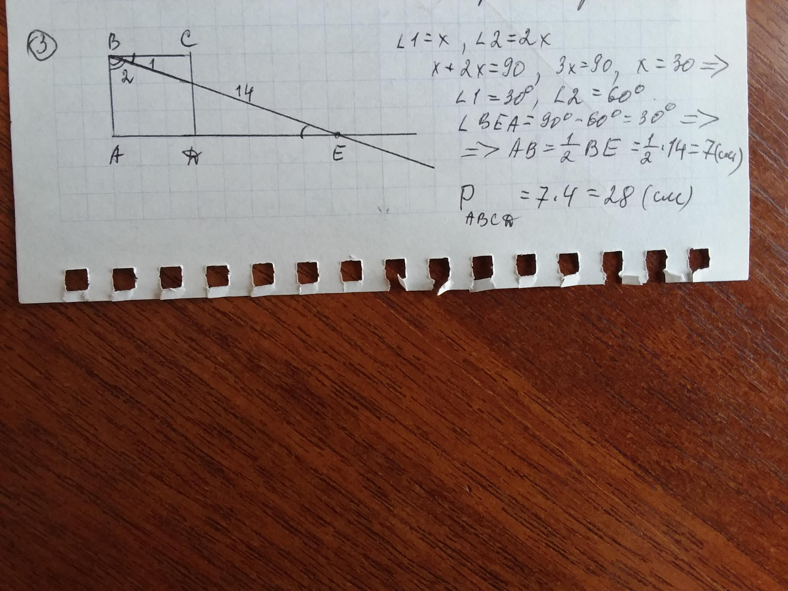 На продовжені сторони AD квадрата ABCD за точкою D взяли точку E таку, що промінь BE поділяє кут ABC у відношенні 1:2. Знайдіть периметр квадрата, якщо BE=14 см.