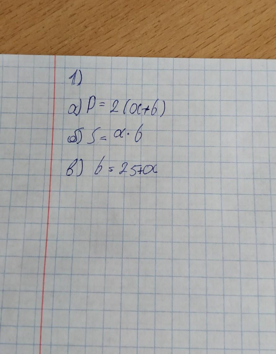 Ответ:1)P=2(a+b) 2)S=ab 3)b-25=a