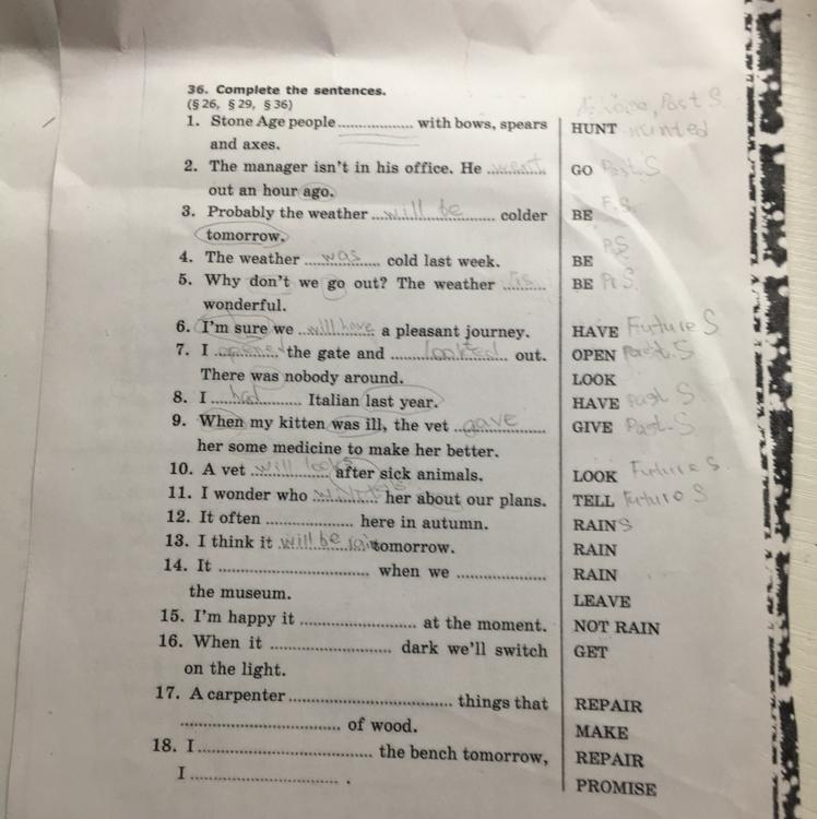 36. Complete the sentences.