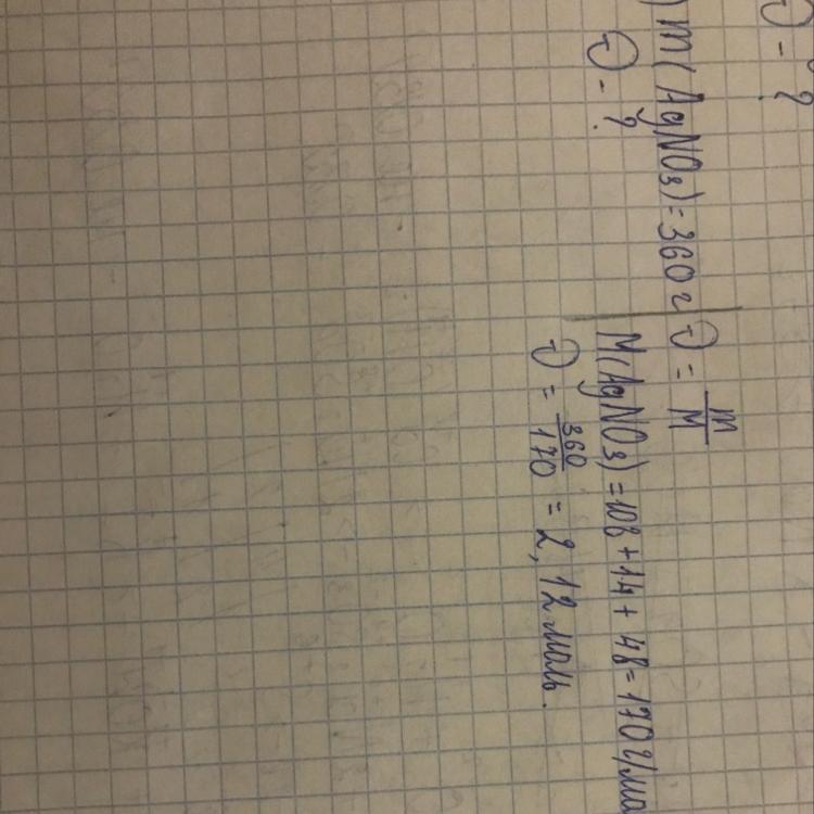 1) Рассчитать, какое количество вещества содержится в 360г AgNO3