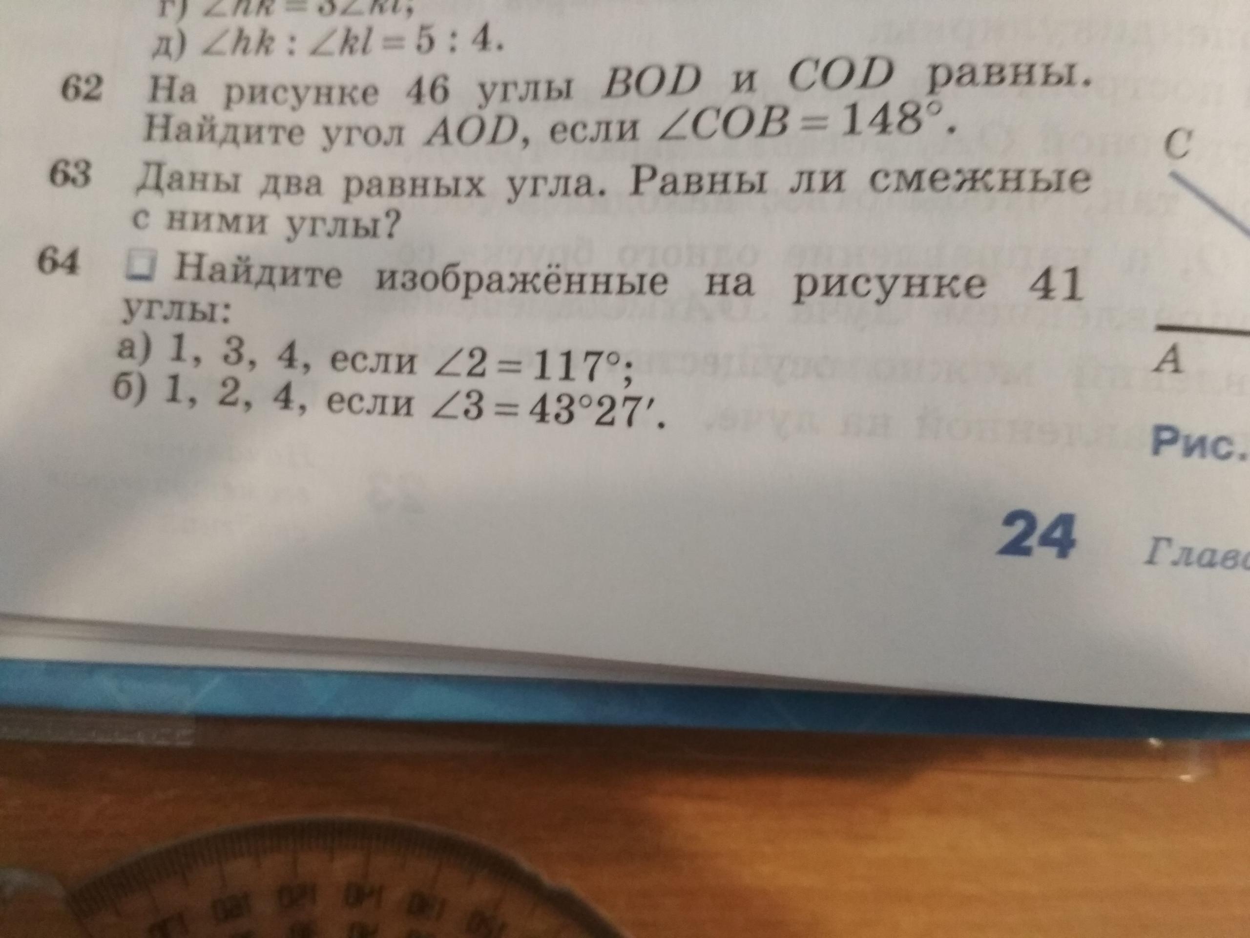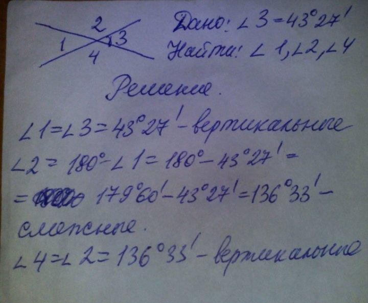 б) Найдите изображенные на рисунке 41 углы : 1,2,4,если угол 3 =43 градусам и 27 минутам.