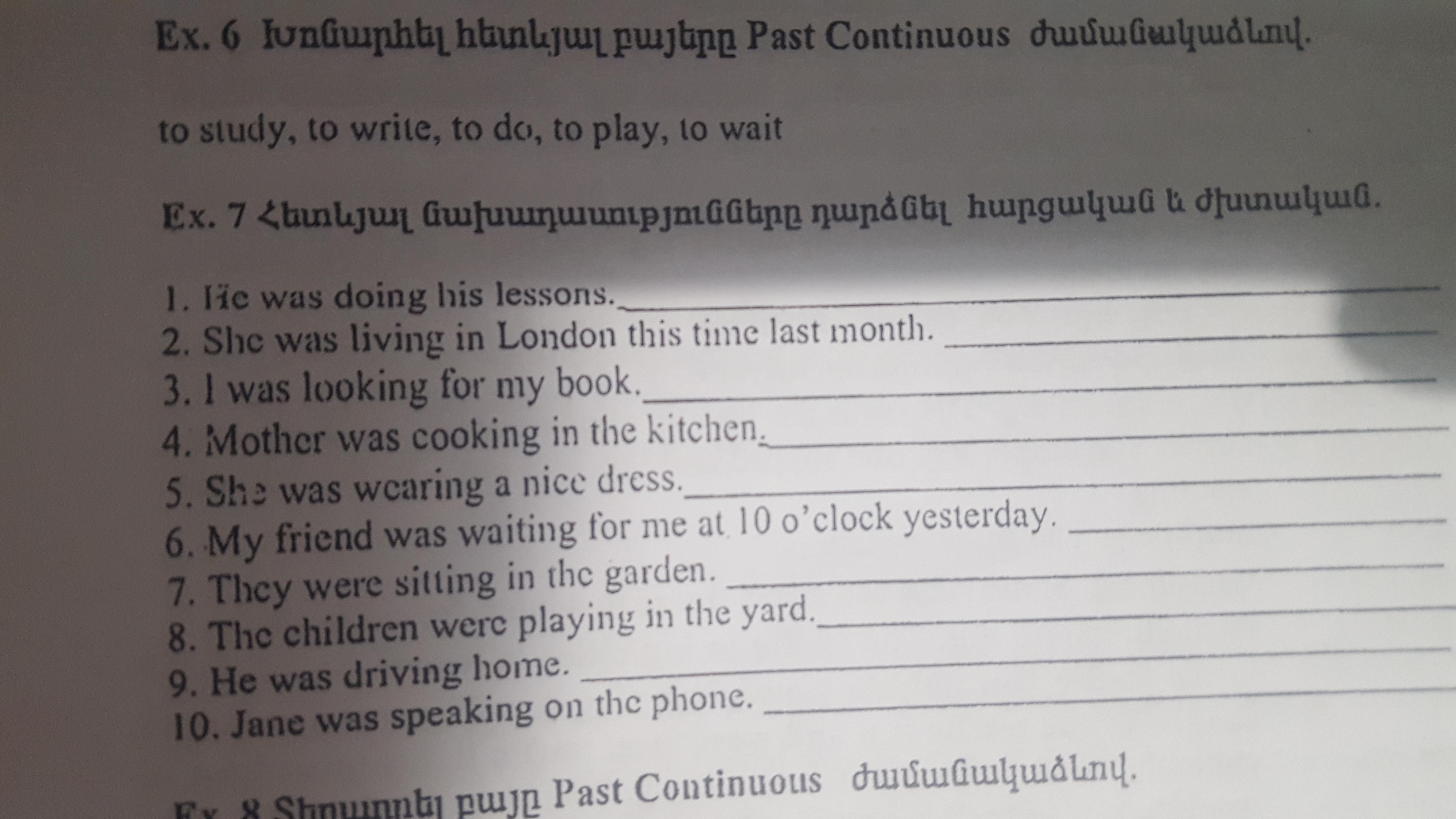 6.My friend wasn't waiting for me at 10 o'clock yesterday. Was my friend waiting for me at 10 o'clock yesterday?