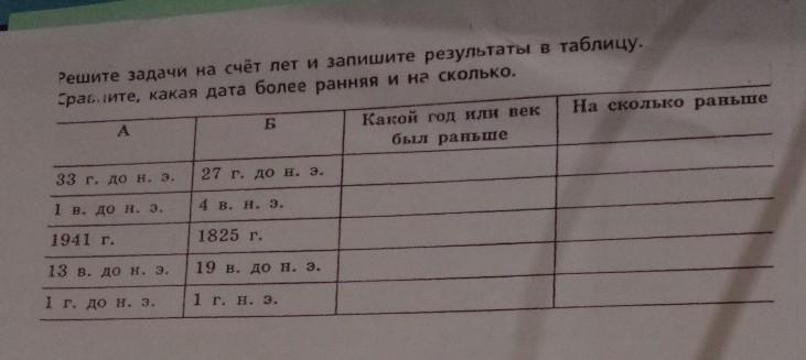 решите задачи на счёт лет и запишите результаты в таблицу Сравните Какая дата более ранняя и на сколько