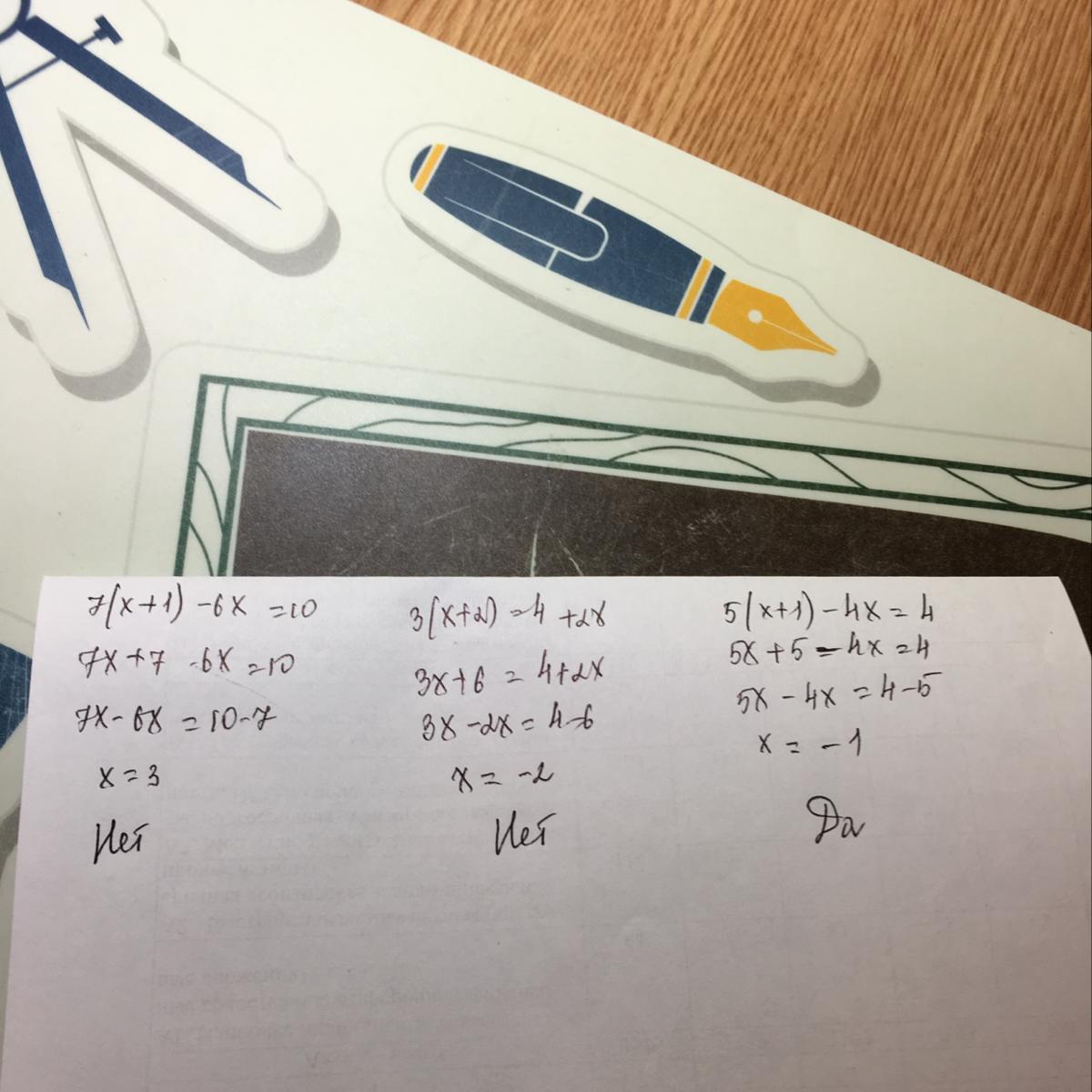 2) 7(х+1) - 6x = 10; 4) 5(х+1)-4х = 4?
