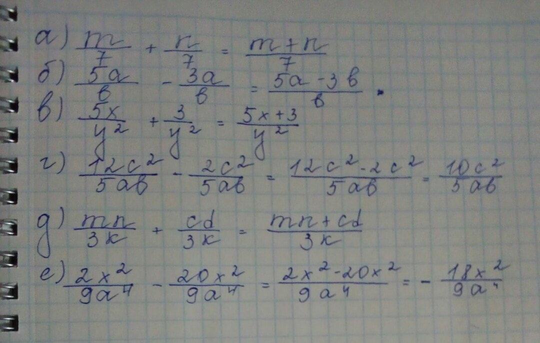 1) m+n/7 ( в дальнейшем пиши знаменатель, то, что внизу под чертой, под числителем, как общий)
