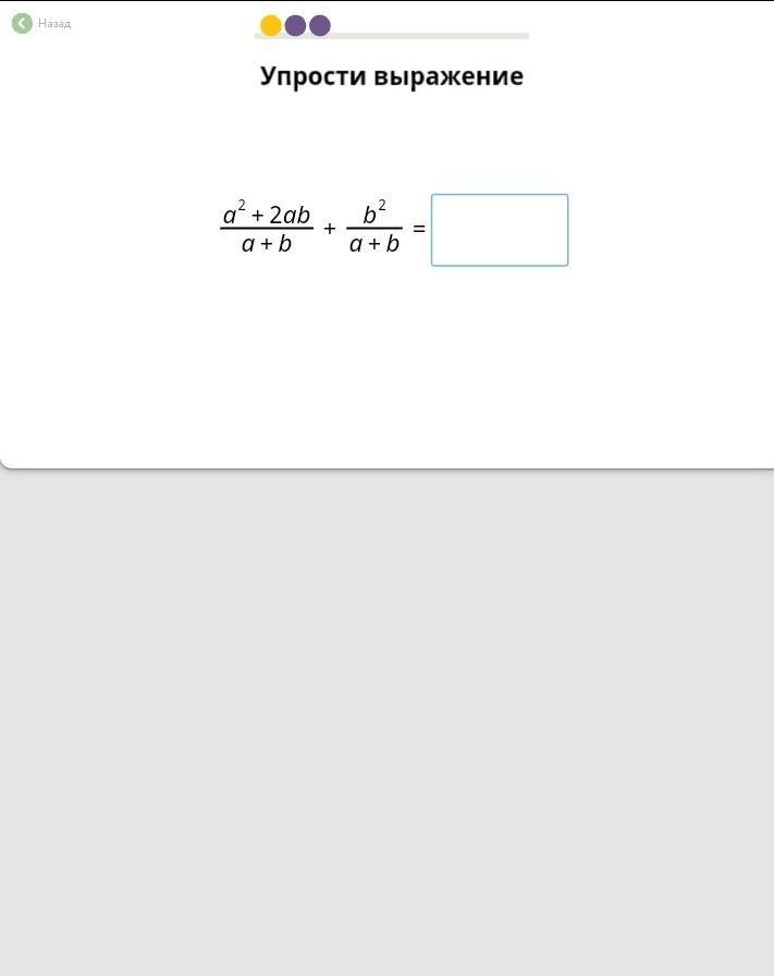 а^2 + 2аb +b ^2 : a+b (a+b)^2 : a+b = a+b