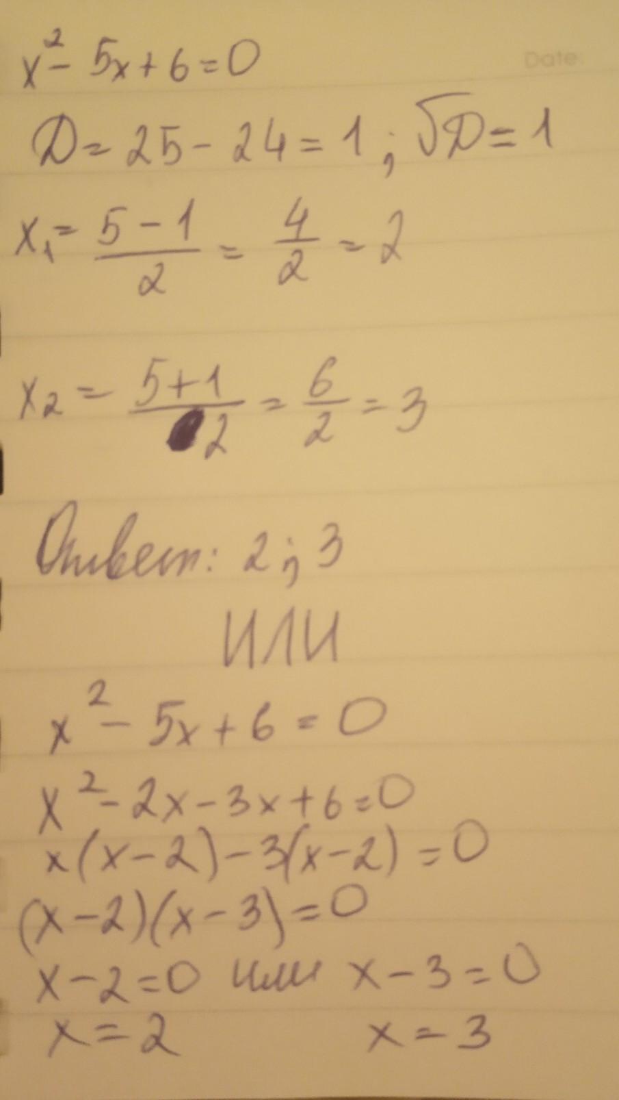если вы не умеете решать через дискриминант, то на этот случай решение на третьей фотографии снизу