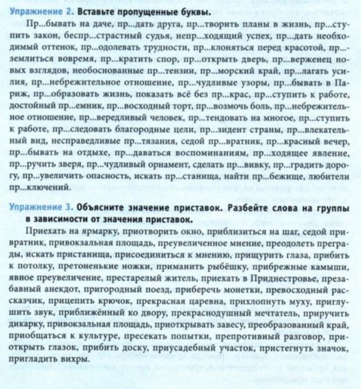 Упражнение 3. Группы слов в зависимости от значения приставок