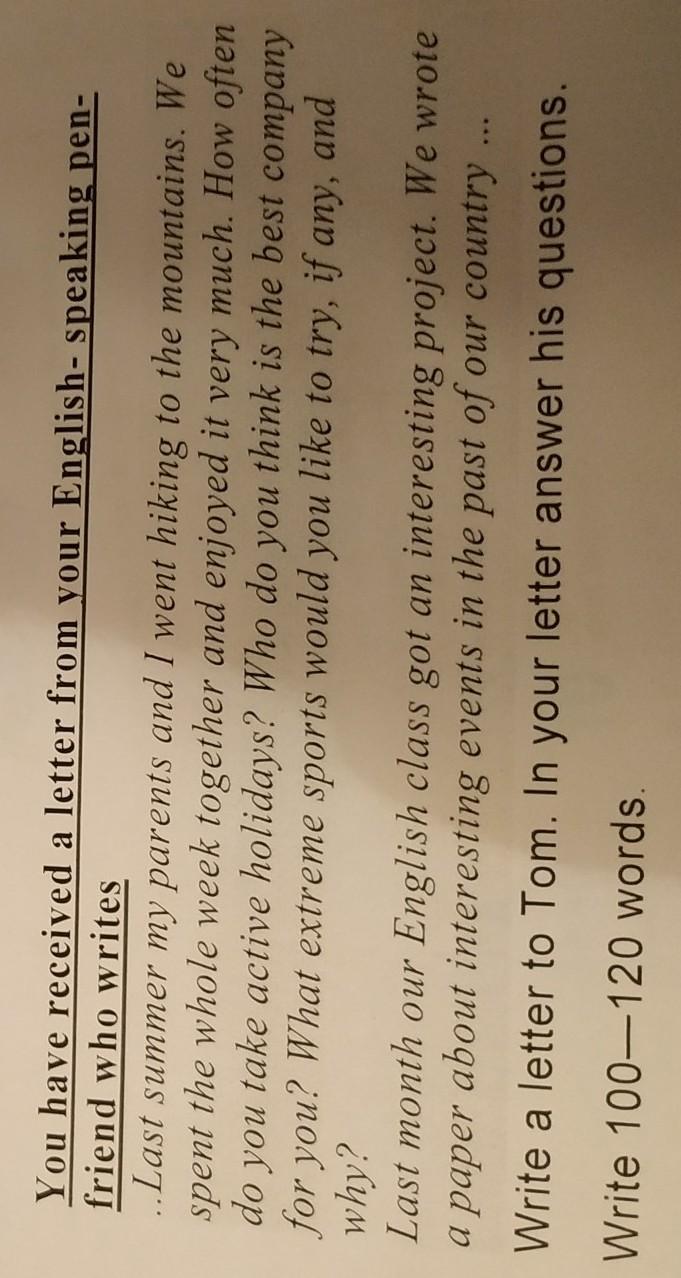 Thank you for the letter. I like active sports but I don't have enough time for it. But if there are long holidays I would definitely go scuba diving or parashout jumping because these sports are my favourites. All kinds of extreme sport are very dangerous and because of that I would never go to do it on my own. I'm happy with having friends who are keen on extreme like me. I would like to try windsurfing next summer because I like the sea and the wind and also I would like to go on a ski resort and learn snowboarding there.