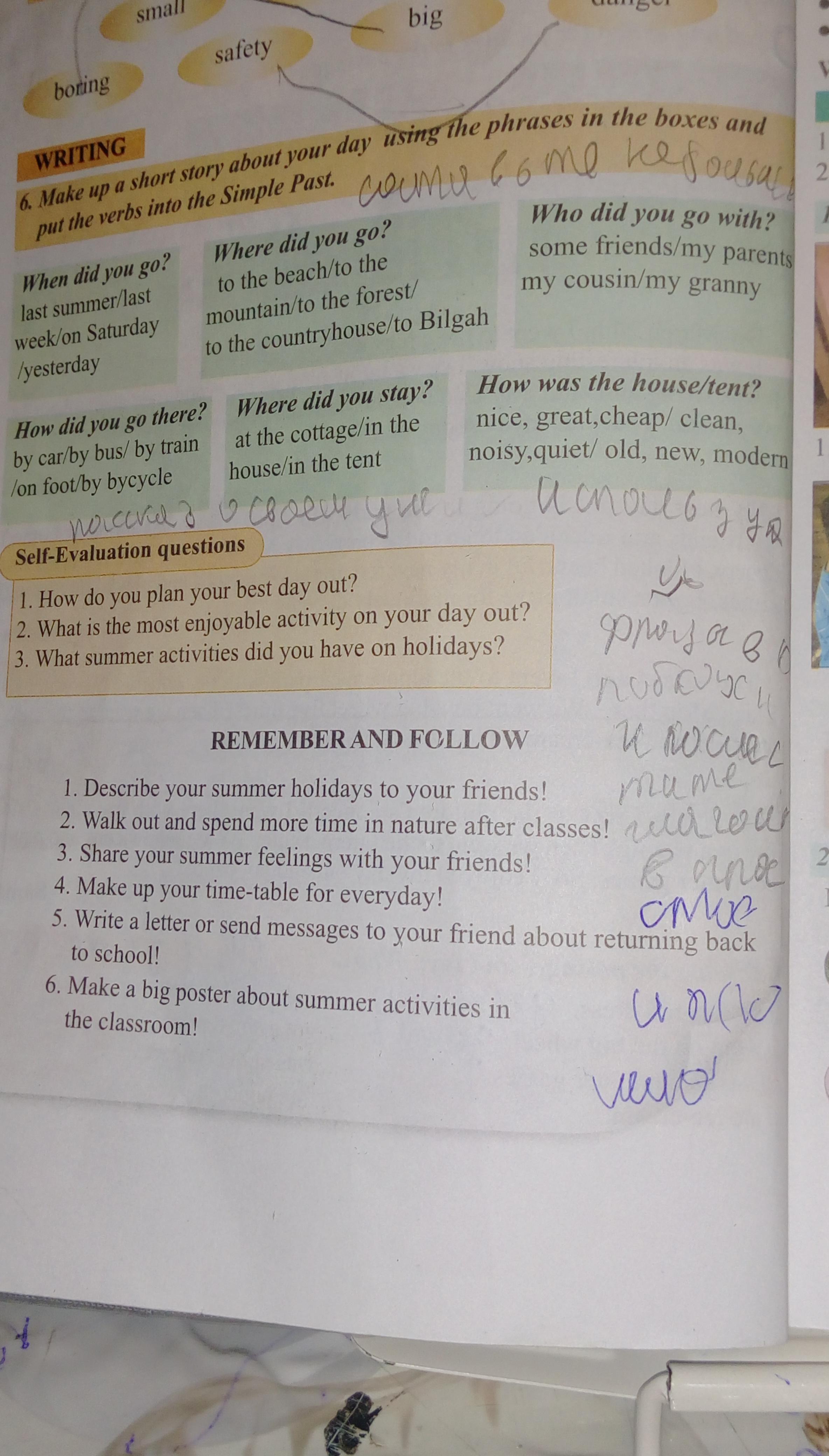 Номер 6 сделайте пжжж перевод я скажу сейчас: Составьте небольшой рассказ о своём дне используя фразы коробках и поместите глаголы простых и прошлых