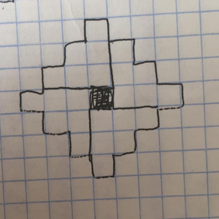 на клетчатой бумаге со стороной клетки равной 1 нарисована фигура разрежьте её на четыре равные фигурки с периметром 14 фигурки можно поворачивать и переворачивать
