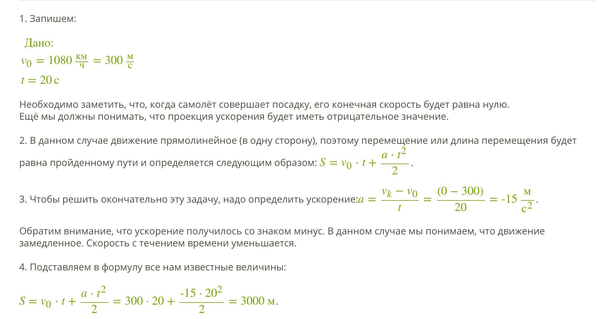 Самолёт, летящий со скоростью 1080 км/ч , совершает посадку. Время до полной остановки самолёта — 20 с . Вычисли длину взлётной полосы, если она равна тормозному пути самолета.
