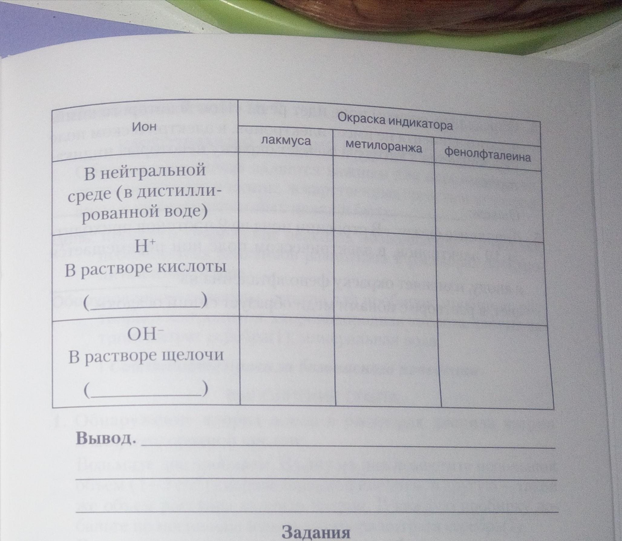 В пробирку с раствором гидроксида натрия добавьте 2-3 капли фенолфталеина. Как изменилась окраска индикатора? Повторите опыт обнаружения гидроксид-ионов в растворе щелочи при помощи лакмуса и метилоранжа. Результаты исследования занесите в таблицу. Помогите пожалуйста!