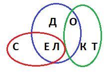D = A∪B∪C = {Д, Е, К, Л, О, С, Т}