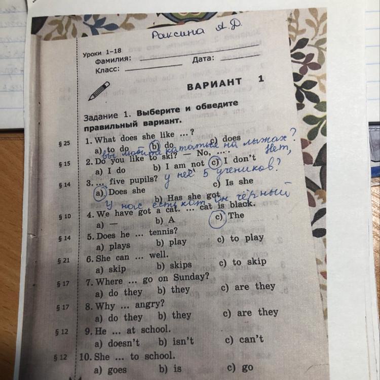 3) b)has she got (has she got = have, то есть фраза has she got переводиться как : Есть ли у нее?)