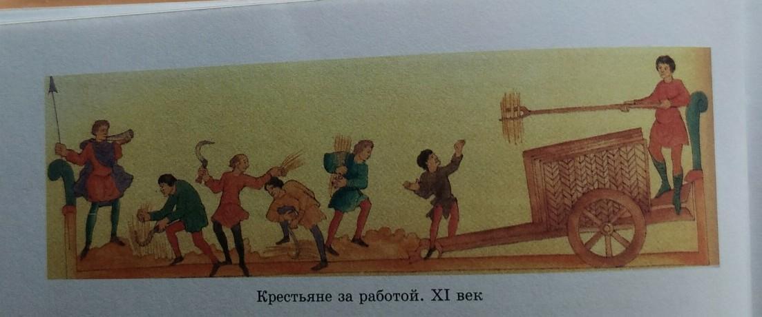 на данном картинке изображены христиане работающие в поле. Один из них передал только что срезанную пшеницу другому христиану. А тот в свою очередь взяв вилами пшеницу кладёт её в тележку. Так же там видны и другие христиане которые срезают зрелое пшено. Явно ведуться сборы провизии. ЗА ними наблюдает богатый христиане. Работа трудная, долга и очень утомительная.