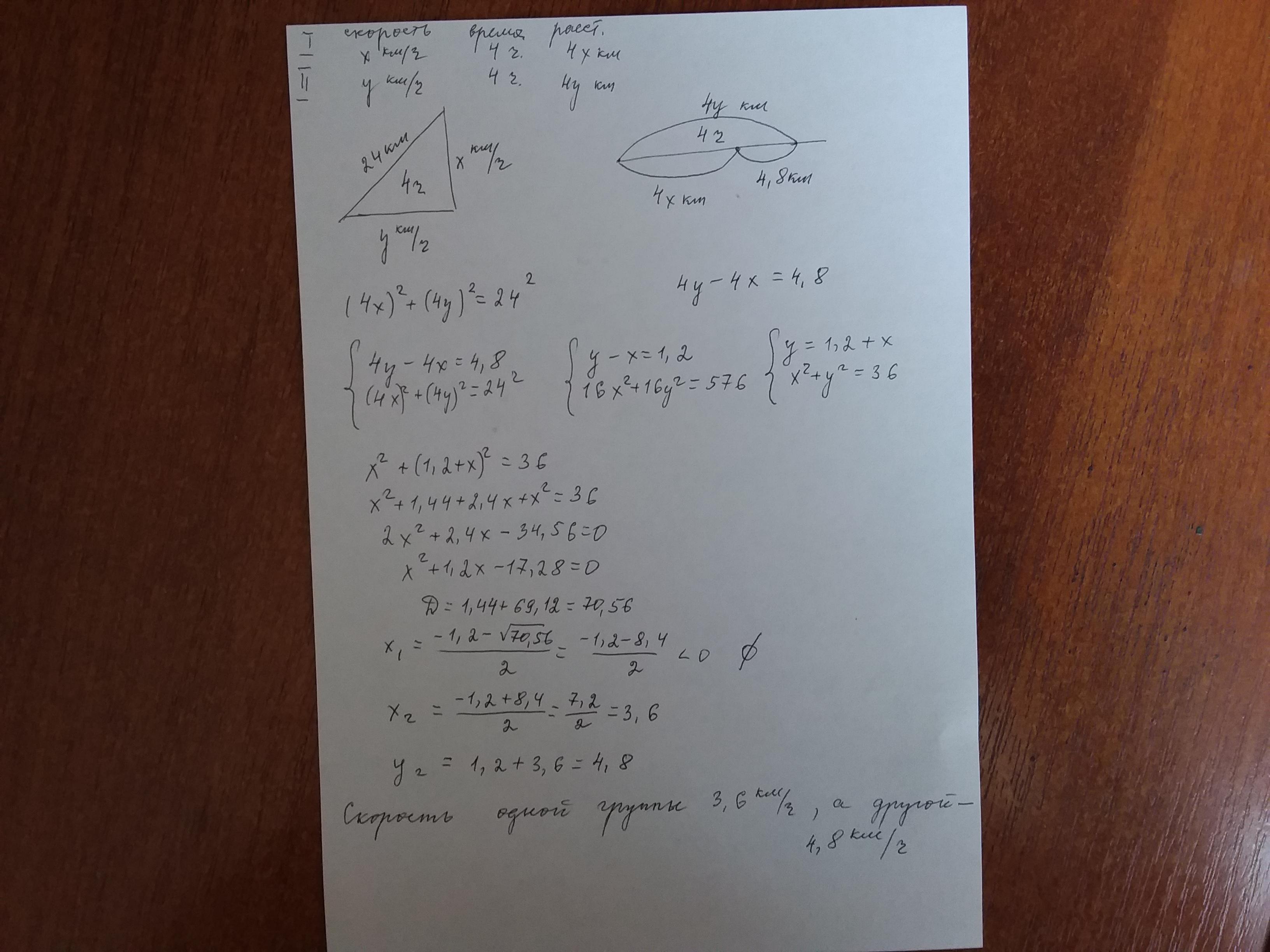 бы обе группы отправились в одном направлении, то через 4ч расстояние между ними было бы 4,8 км. Найдите скорость дви-