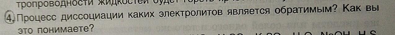 Ответ:Обратимым является процесс диссоциации слабых электролитов.Вот какие электролиты слабые