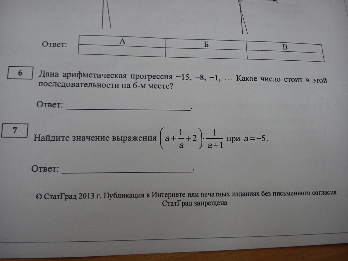Шаг прогрессии +7. Члены прогрессии: -15, -8, -1, +6, +13, +20. Шестым идет +20