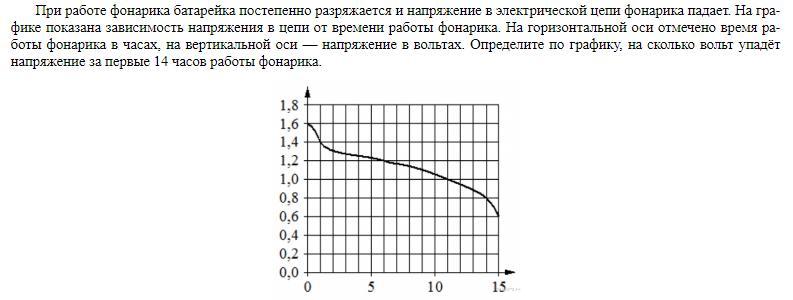 Решение лёгкое как печенька. По горизонтали это Вольты, а по вертикале время. За 14 часов получаем 0,8. Сначала было 1,6.