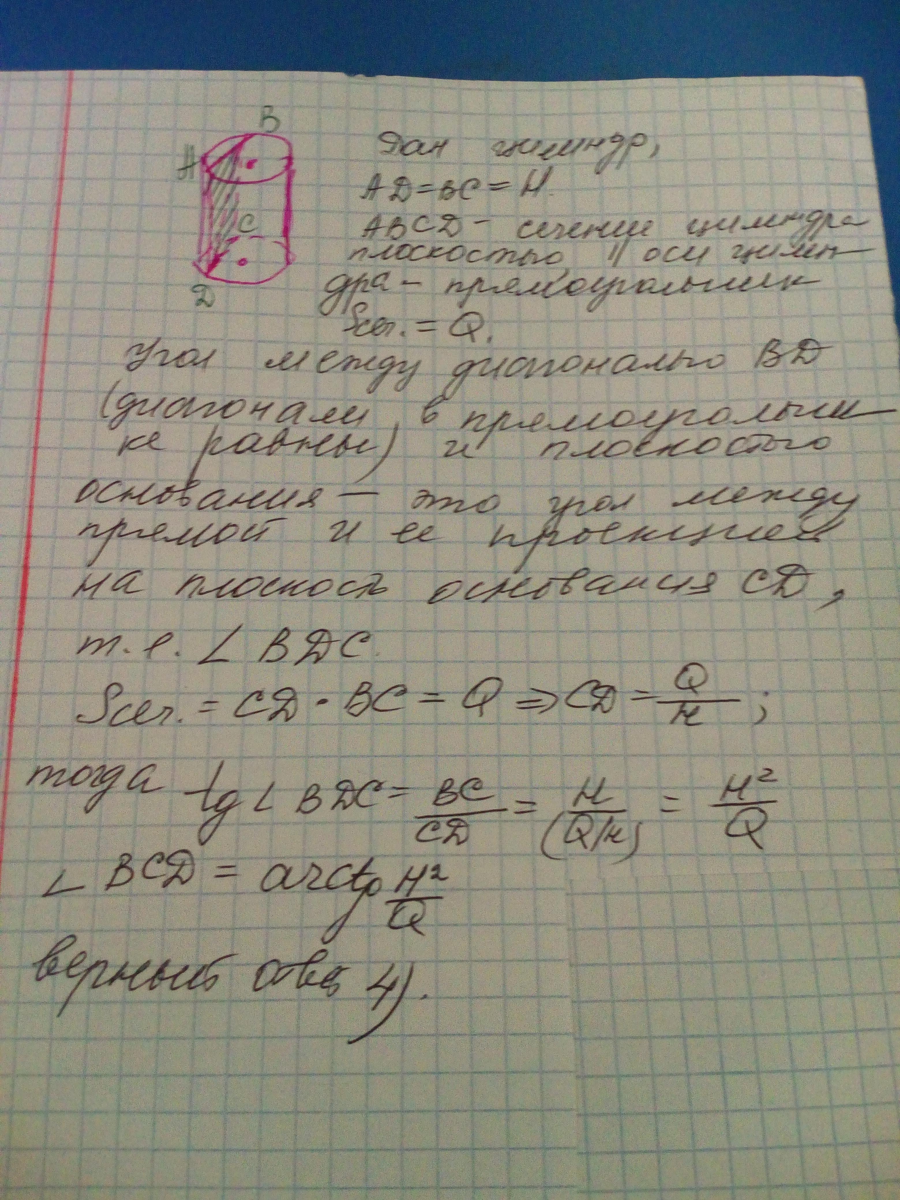 Геометрия 11 класс. Тест по цилиндру. Помогите, пожалуйста!!! С решением ^^