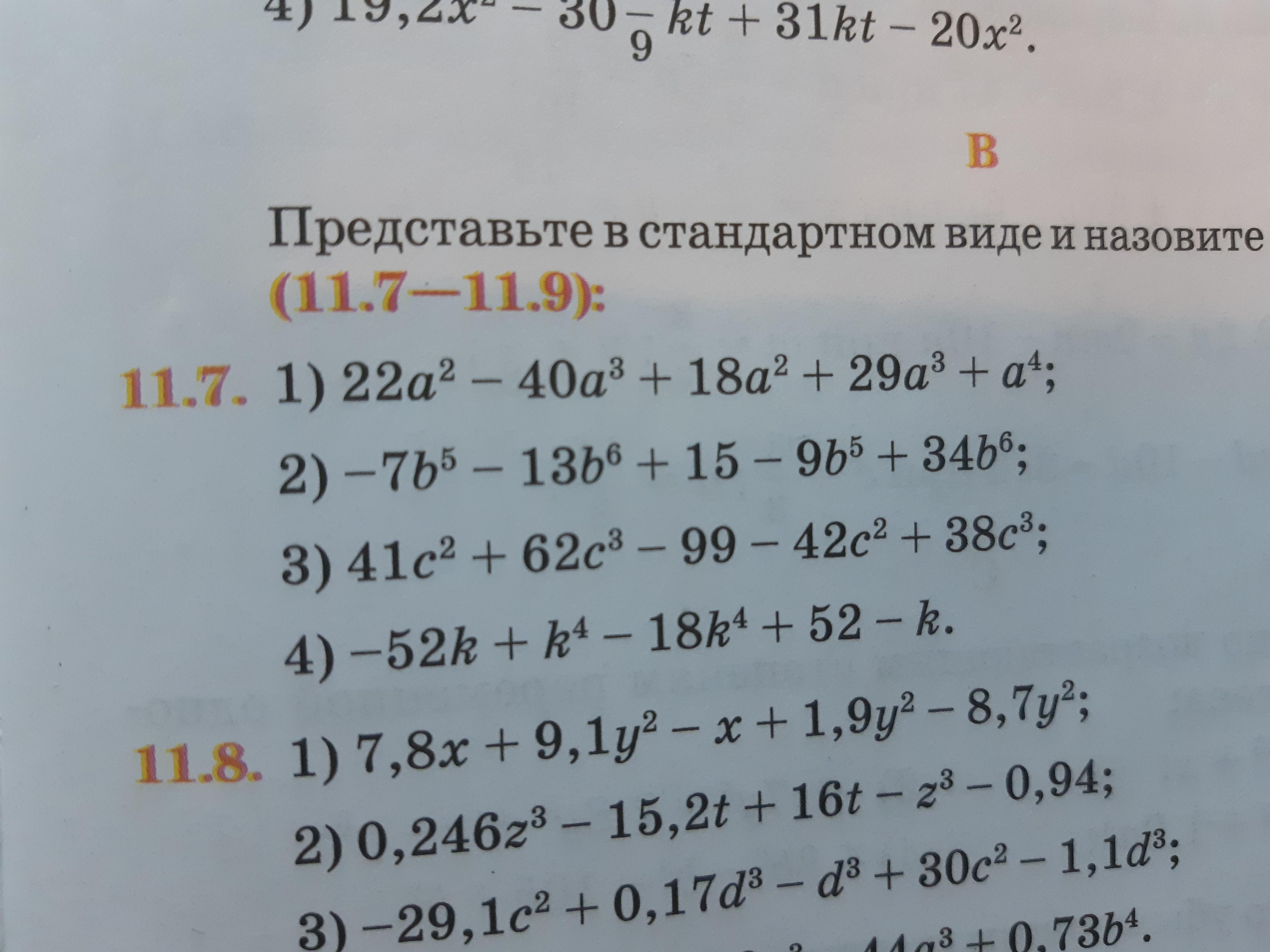 2) -7b⁵ - 13b⁶ + 15 - 9b⁵ + 34b⁶ = 21b⁶ - 16b⁵ + 15; степень - 6;