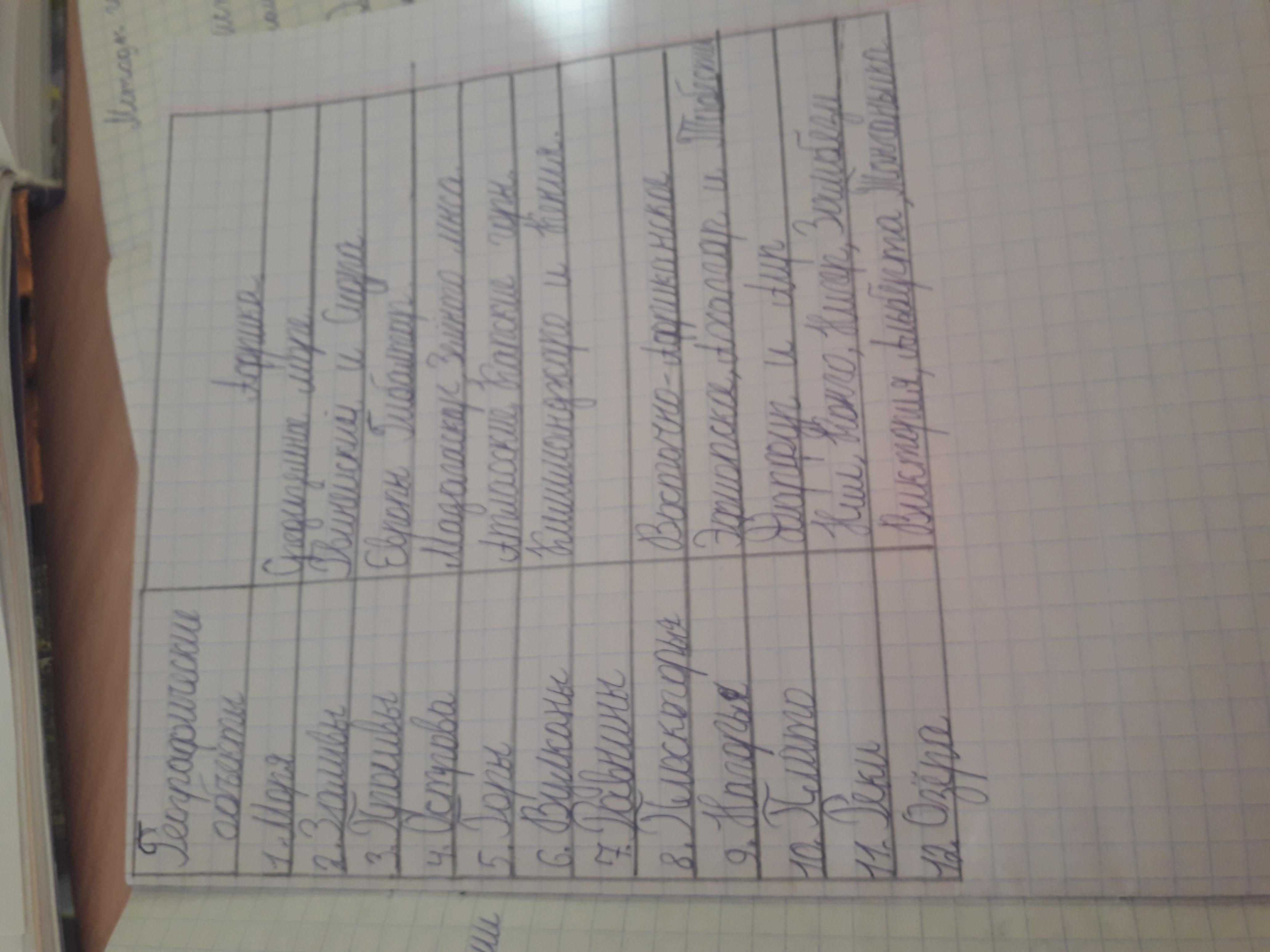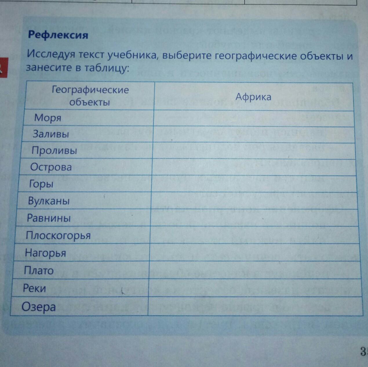 Исследуя текст учебника, выберите географические объекты и занесите в таблицу: