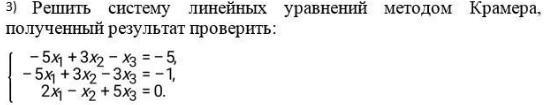 -5x₁ + 3x₂ - x₃ = -5 -5 3 -1 -5 D = -5*3*5 + 3*(-3)*2 + (-1)*2*1 -