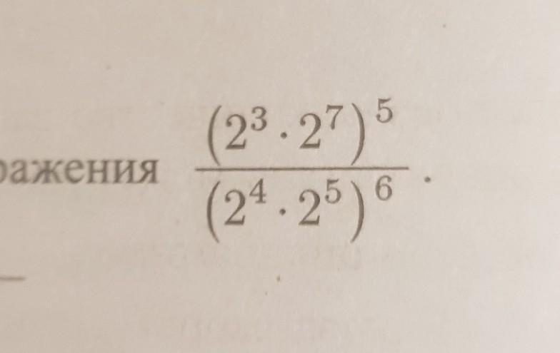 Объяснение: если в скобках есть степень, то ты должен умножить всю степень на ту что за скобкой, потом в этоге при делении степени вычитаются, тобиш у нас сверху 24 а снизу 30 выходит 6 степень.