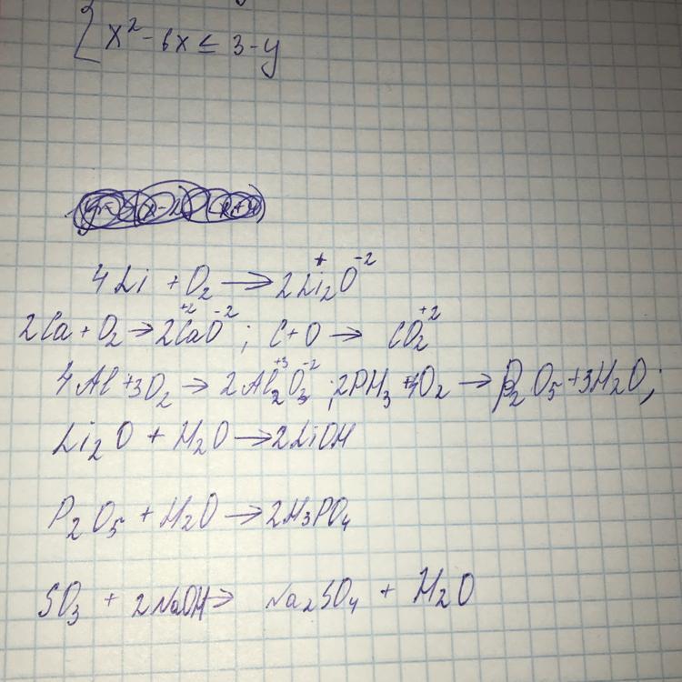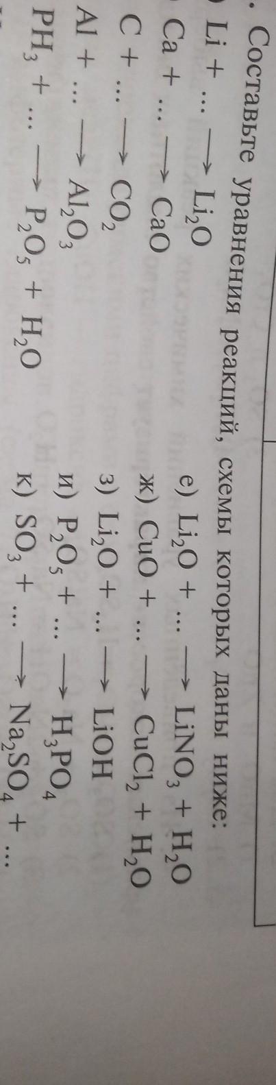 Извини что не аккуратно)Все очень просто.Тебе нужна таблица растворимости.Сверху написаны элементы,точнее металлы ,кроме водорода(неметалл).Каждый имеет заряд например Li+ , обычно O это -2 ,следовательно Li2O,считаем кислород и литий до реакции и после.До реакции литий был 1,а кислорода было 2 ,после лития 2,а кислород 1 ,ставим коэффициенты получается 4Li+O2->2Li2O (4 лития и 2 кислорода)