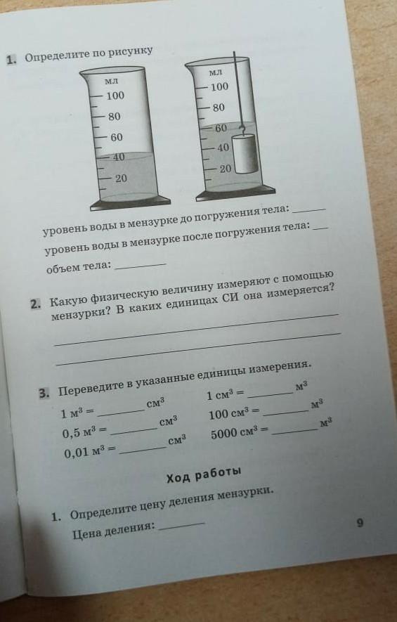№1. Уровень мензурки до погружения тела оставался неизменным, но после того, как в нее погрузили тело, уровень воды повысился, так как на тело действует сила Архимеда(Вы это будете изучать во втором полугодии 7-го класса по физике).