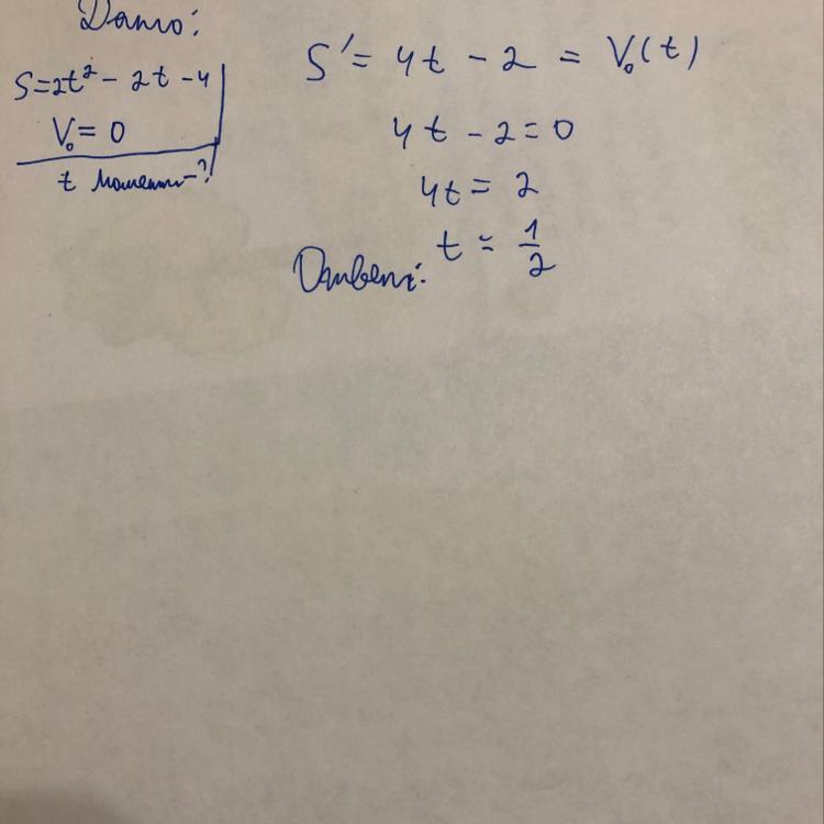 1. Тіло рухається прямолінійно за законом : S = 2t^2 - 2t - 4 . В який момент часу його швидкість дорівнює нулю ?