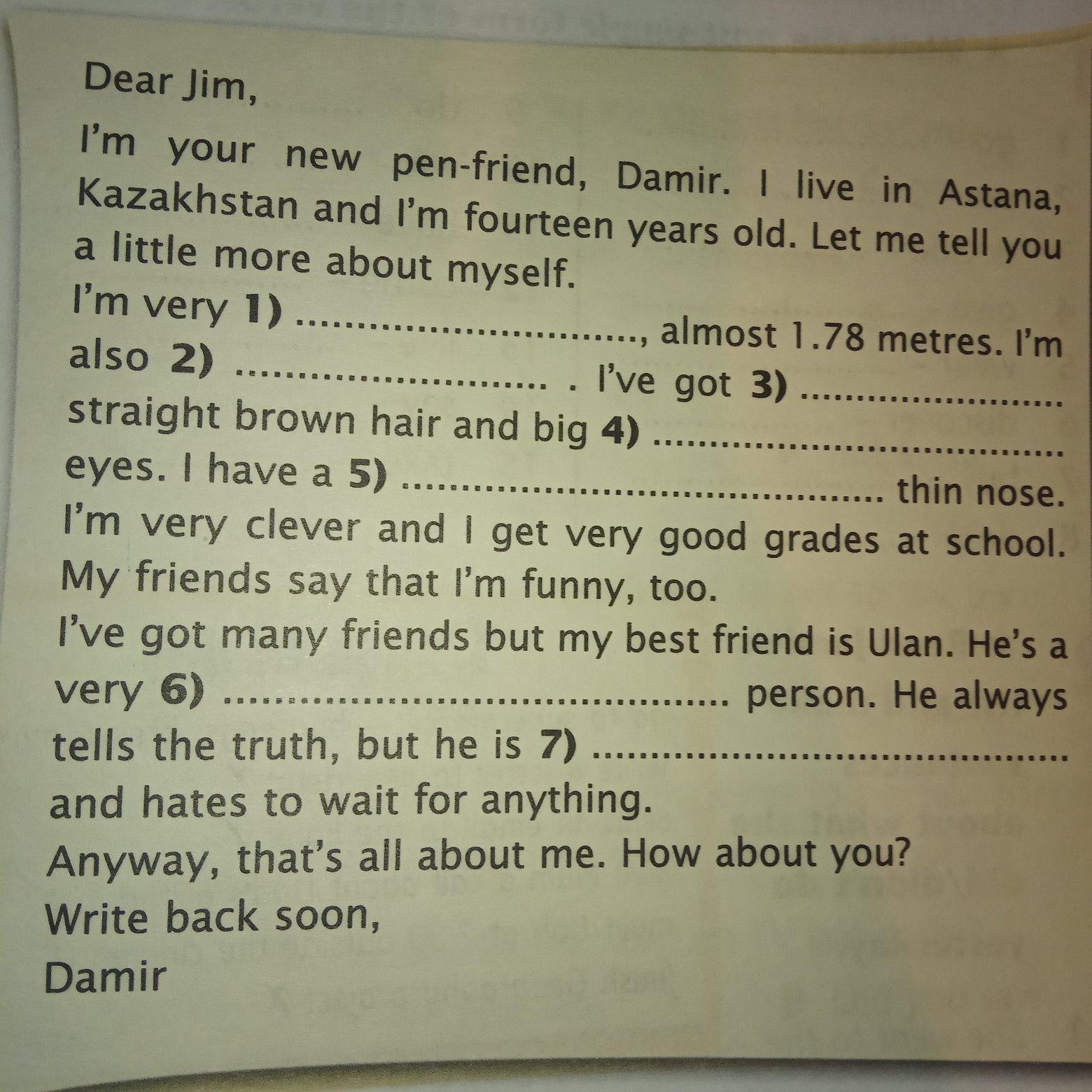 Я твой новый друг по переписке, Дамир. Я живу в Астане, Казахстан и мне четырнадцать лет. Позвольте мне сказать вам еще немного о себе.