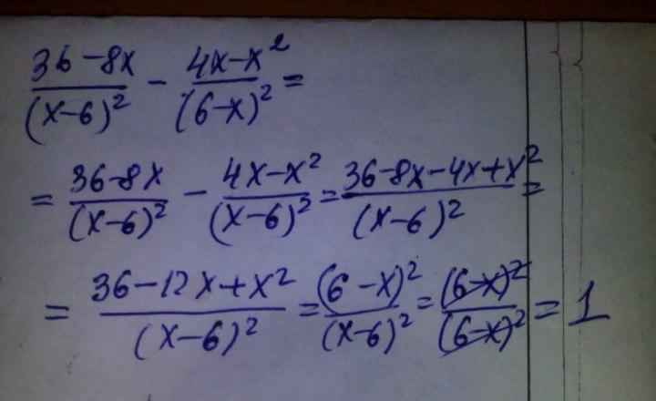 36-8x/(x-6)^2 - 4x-x^2/(6-x)^2 - упростите выражение