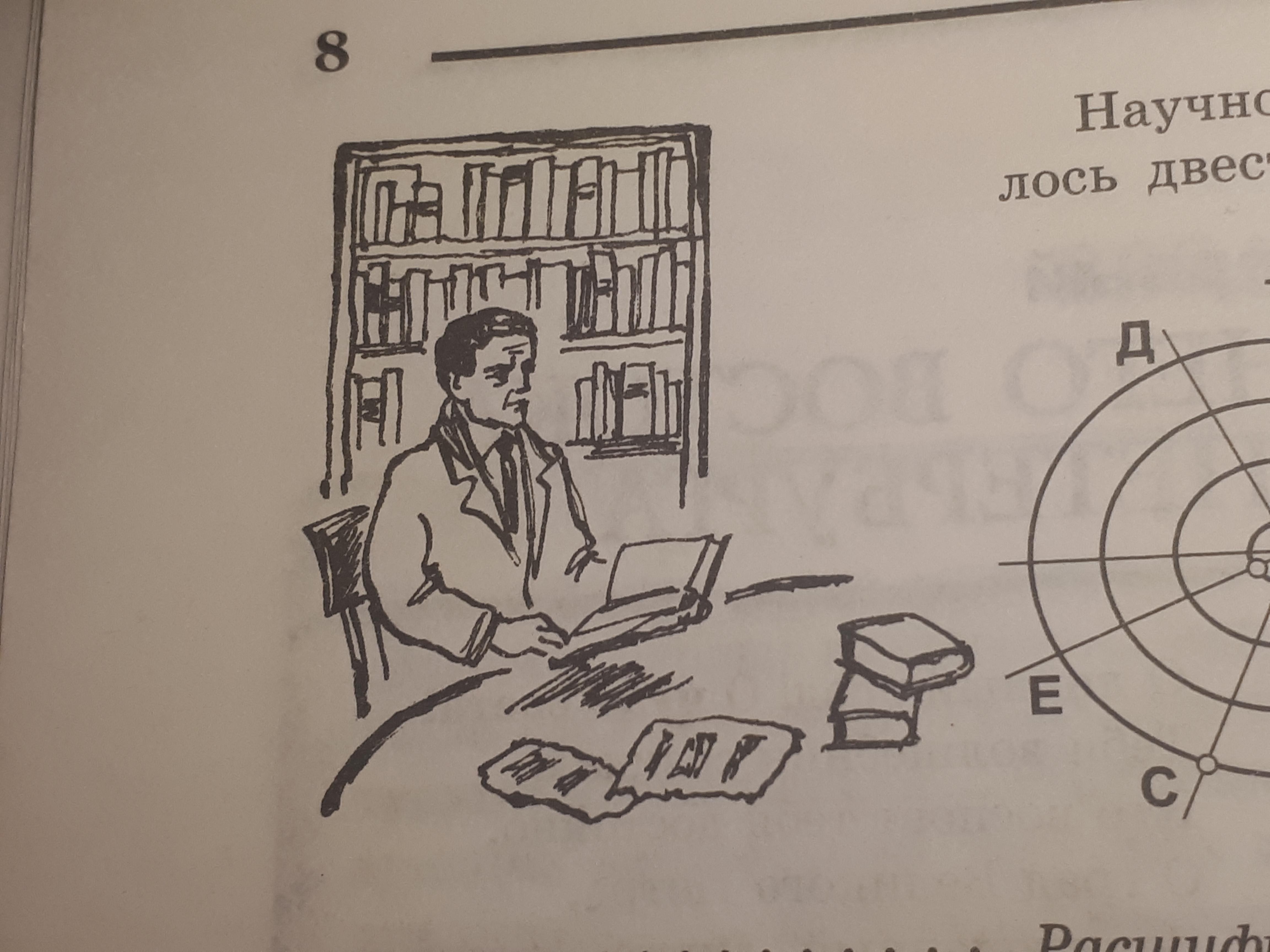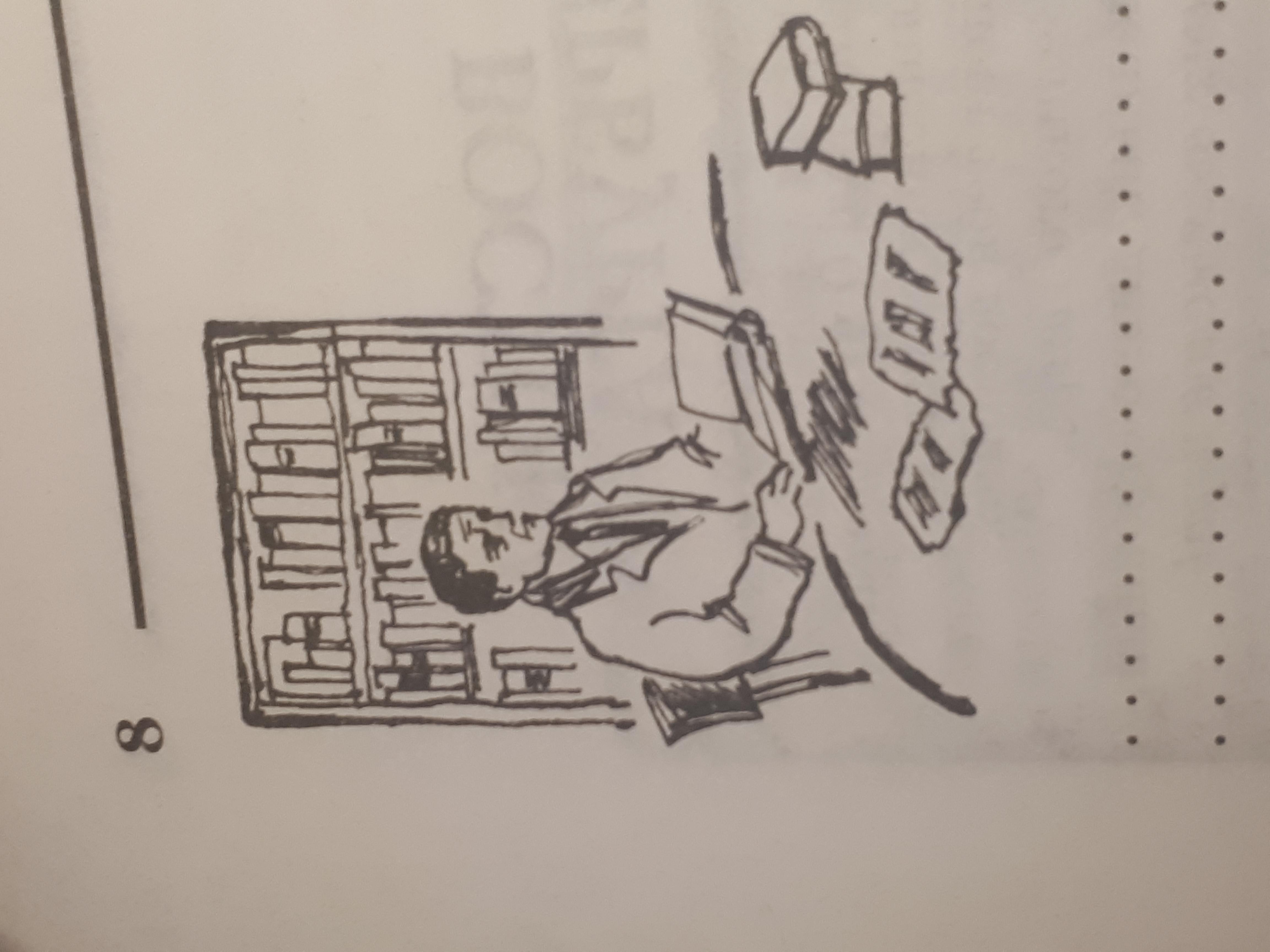 А ели по картинке то он изучает или читает книгу в библиотеке так как сзади него большая книжная полка.