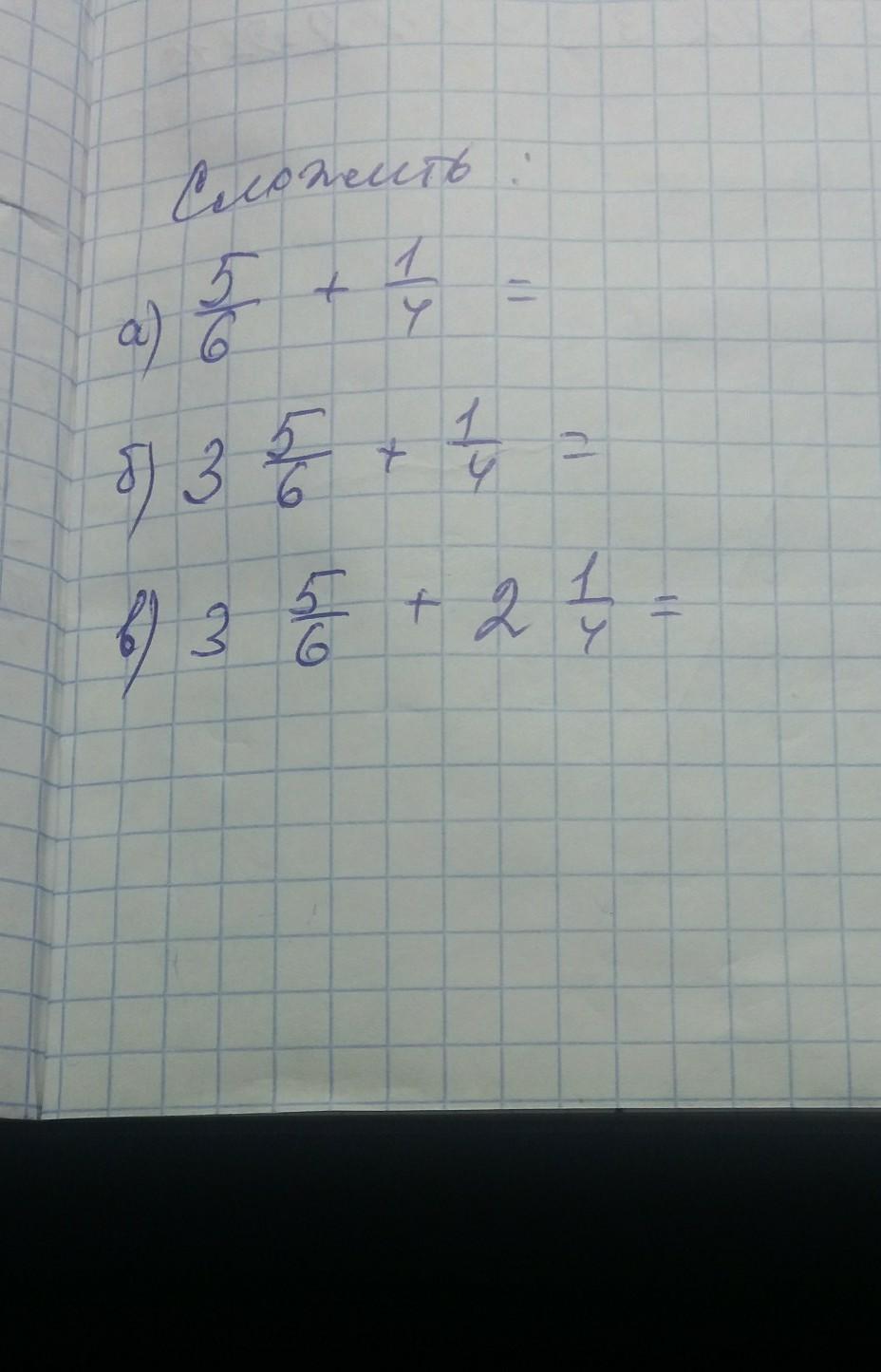 3 5/6 +1/4 = 3 + 10/12 +3/12 = 3 +13/12 = 3 +1.1/12 =4.1/12