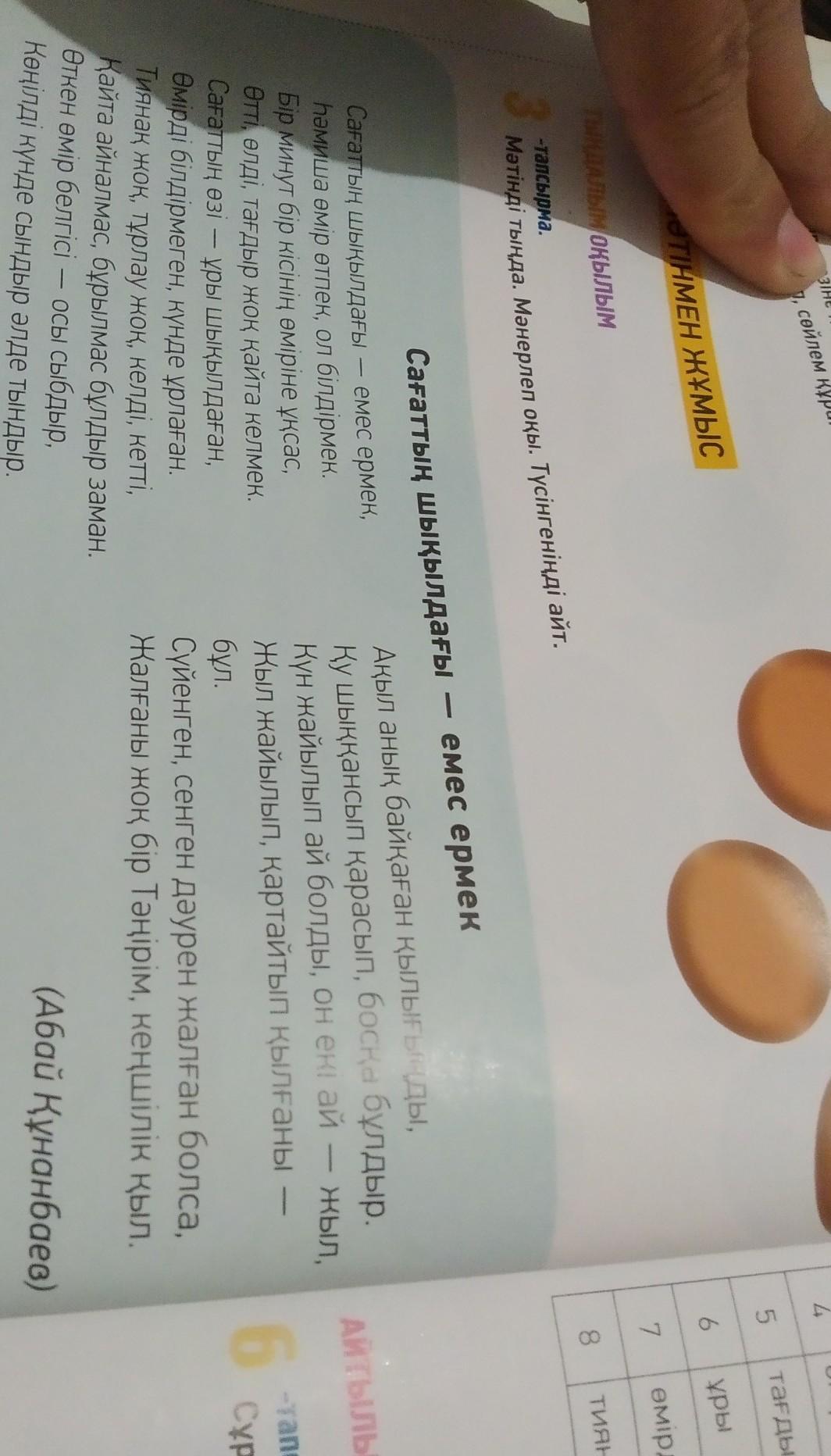 Объяснение:Менің ойымша, бұл өлең жолдары арқылы Ұлы Ақынымыз А.Құнанбаев "сағат күнделікті шықылдап тұрғанда, әншейін бір уақыт өтіп жатқан сияқты көрінгенімен, ол өмірдің өтуіне куә, себеп болып жатқанын" баяндаған.