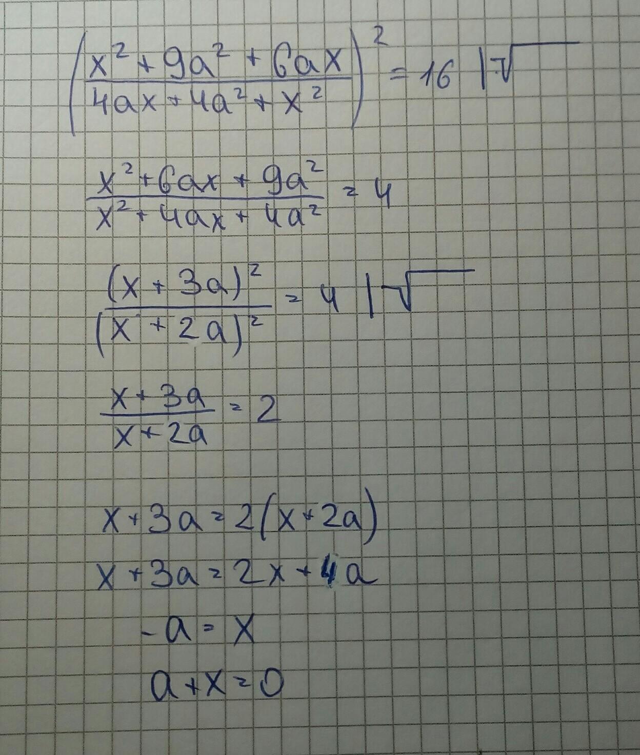 В числителе и знаменателе формулы сокращенного умножения, дальше извлекается корни и решаем уравнение. В итоге приходим к условию, что х+а=0