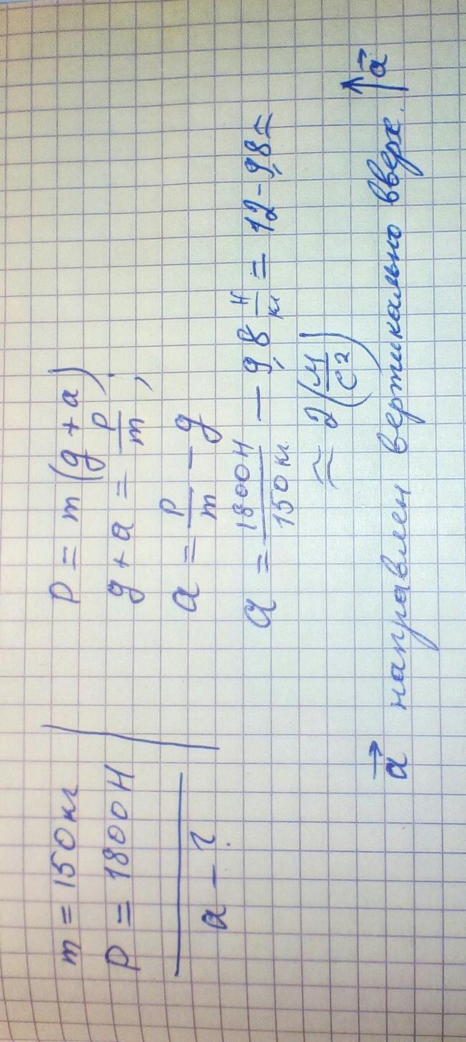 Груз массой 150 лежит на дне лифта и давит на него с силой 1800 Н. Определите модуль и направление ускорения лифта.