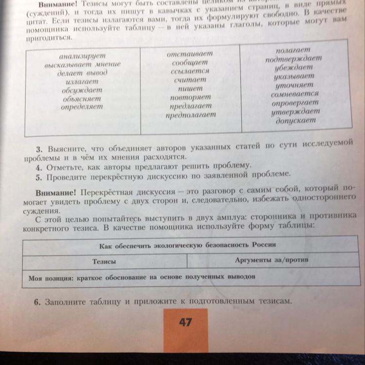 Чтобы у учащихся не возникало резонного возражения о том, что безнравственно или беспринципно искать аргументы, допустим, «за», если ты твердо стоишь на позиции «против», можно сформулировать задание так: «Запишите свои аргументы и попробуйте предугадать аргументы оппонентов».