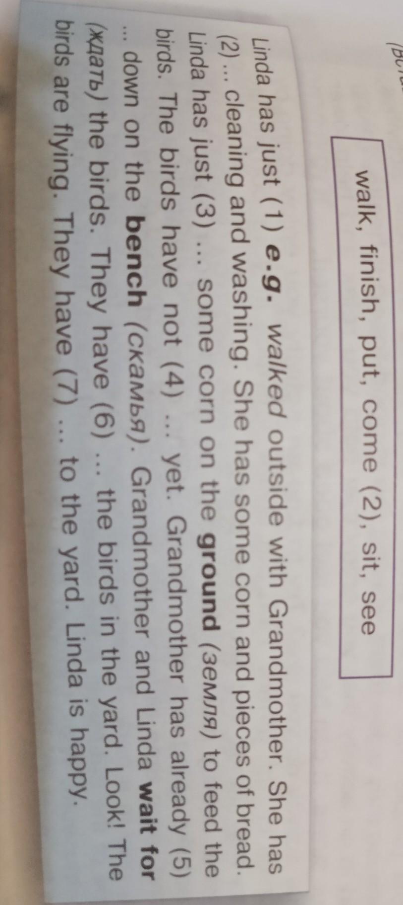 2 finish 3 put 4 come 5 sit 6 see 7 come