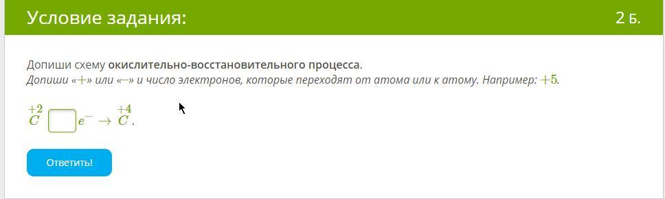 Допиши «+» или «–» и число электронов, которые переходят от атома или к атому. Например: +5.
