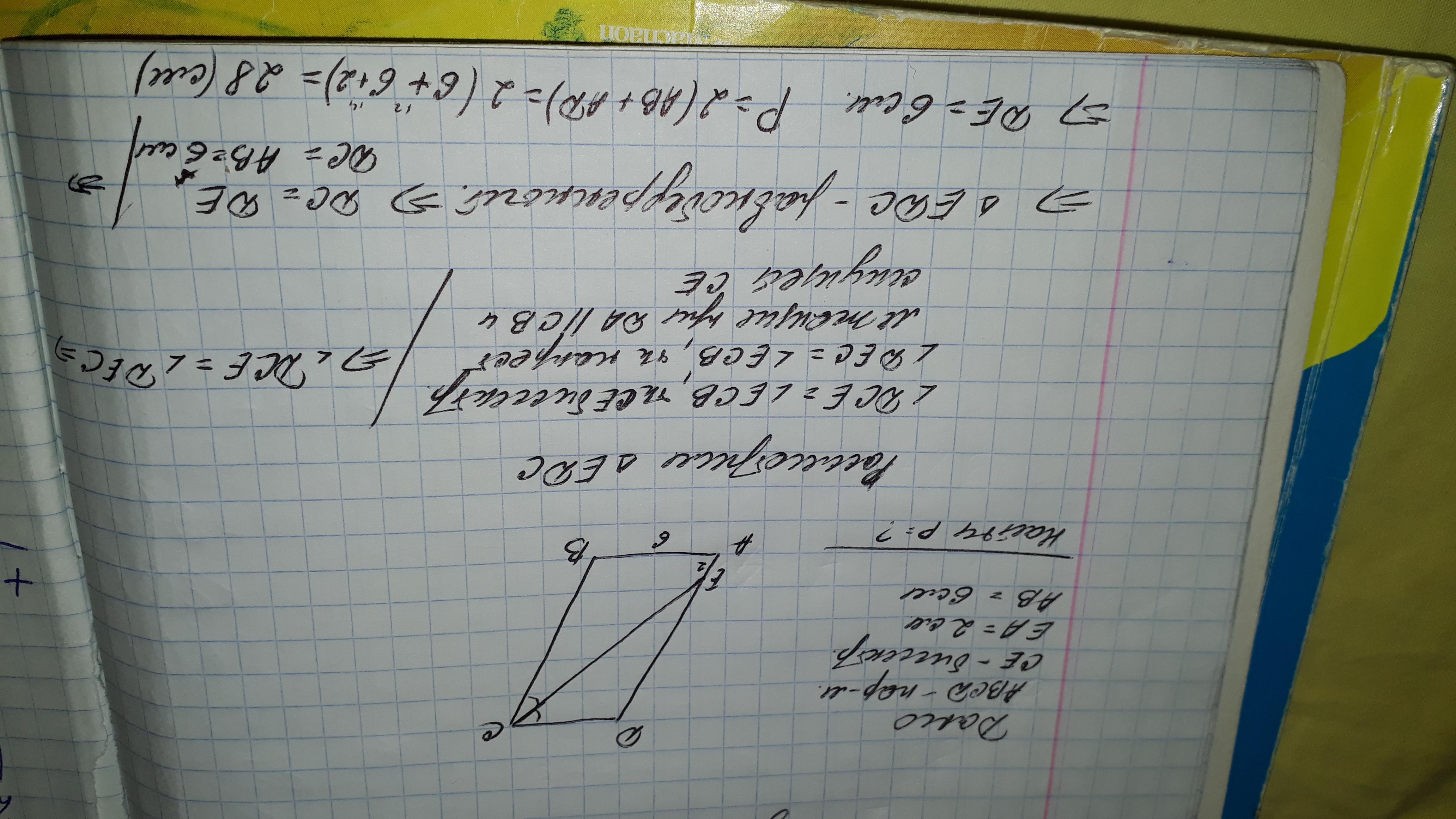 ADCB параллелограмм ЕС биссектриса AE равно 2 см AB 6 см Найдите периметр