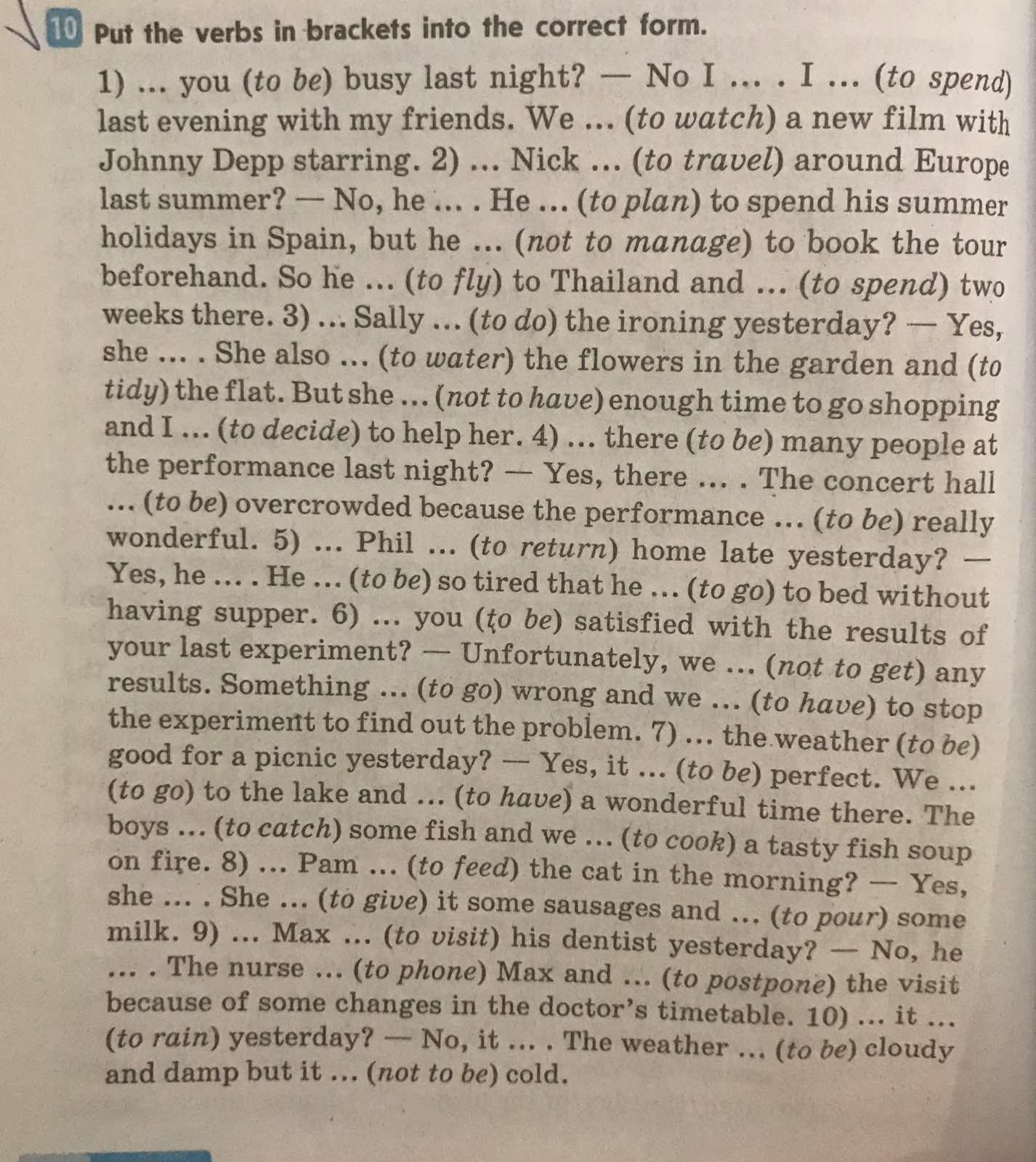 3)Did do; did; watered; tidied; didn't have; decided